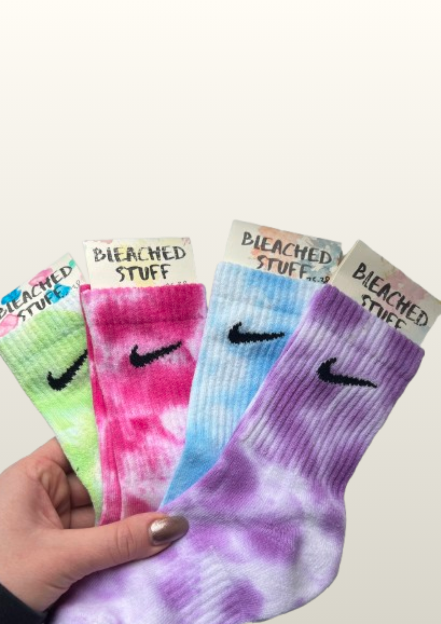 Šīs ir orģinālas NIKE zeķes, kas ir uzlabotas izmantojot dažādas krāsas un krāsošanas metodes!